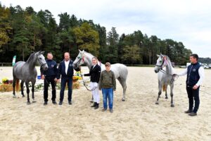 Als nächstes wurden die Hengstfohlen bewertet. Am besten bewertet wurden die Hengstfohlen des Züchters Janez Peternel. Der erste Platz ging an Conversano Dubovina, geboren am 07.05.2022, väterlicherseits von 388 Conversano Allegra XLVI und Mutter 633 Dubovina XXXIV mit 40 Punkten. Den zweiten Platz belegte Pluto Thais, geboren am 14.04.2022, väterlicherseits von 397 Pluto Betalka XXIV und Mutter 715 Thais IV mit 38 Punkten und den dritten Platz teilten sich die Hengstfohlen Conversano Monteaura, geboren am 12.05.2022, väterlicherseits von 388 Conversano Allegra XLVI und Mutter 288 Monteaura X und Siglavy Barbana geboren am 14.03.2022, väterlicherseits von 363 Siglavy Samira XXII und Mutter 576 Barbana VII mit 37 Punkten.