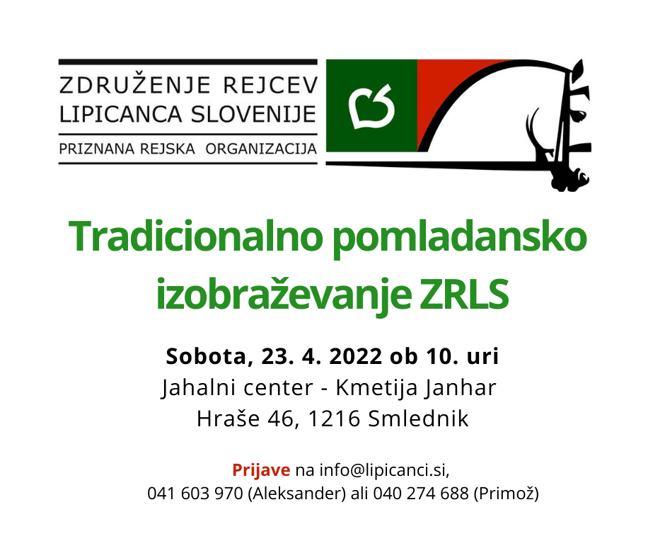 Dodatne informacije in okvirne prijave na info@lipicanci.si ali 041 603 970 (Aleksander Ozmec) in 040 274 688 (Primož Tanko)